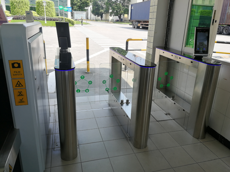 人臉識別通道閘工廠案例,速通閘進出配置人臉識別系統和刷卡系統,出入方便, 通行速度快